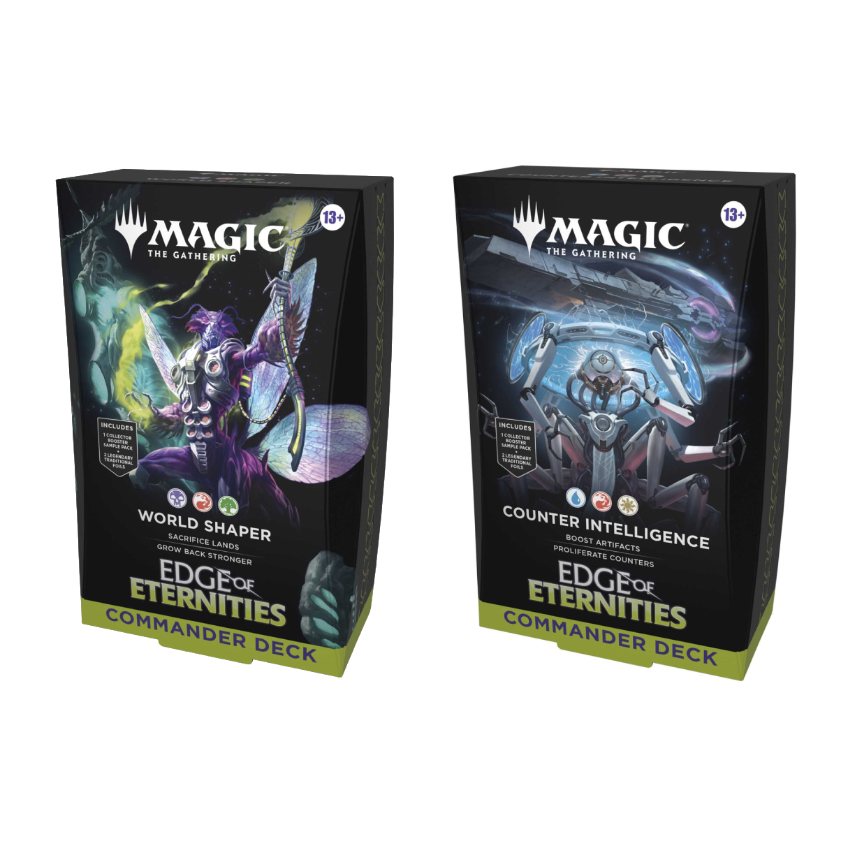 Explore the void with Commander decks. Each deck includes a Collector Booster sample pack and introduces 12 new cards, including 2 Borderless Traditional Foil cards and 2 New Rare Dual Lands.